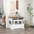- - Storage Space: Keep pet essentials organized with the dog crate furniture's built-in storage compartment, which is great for stashing away dog food and toys.