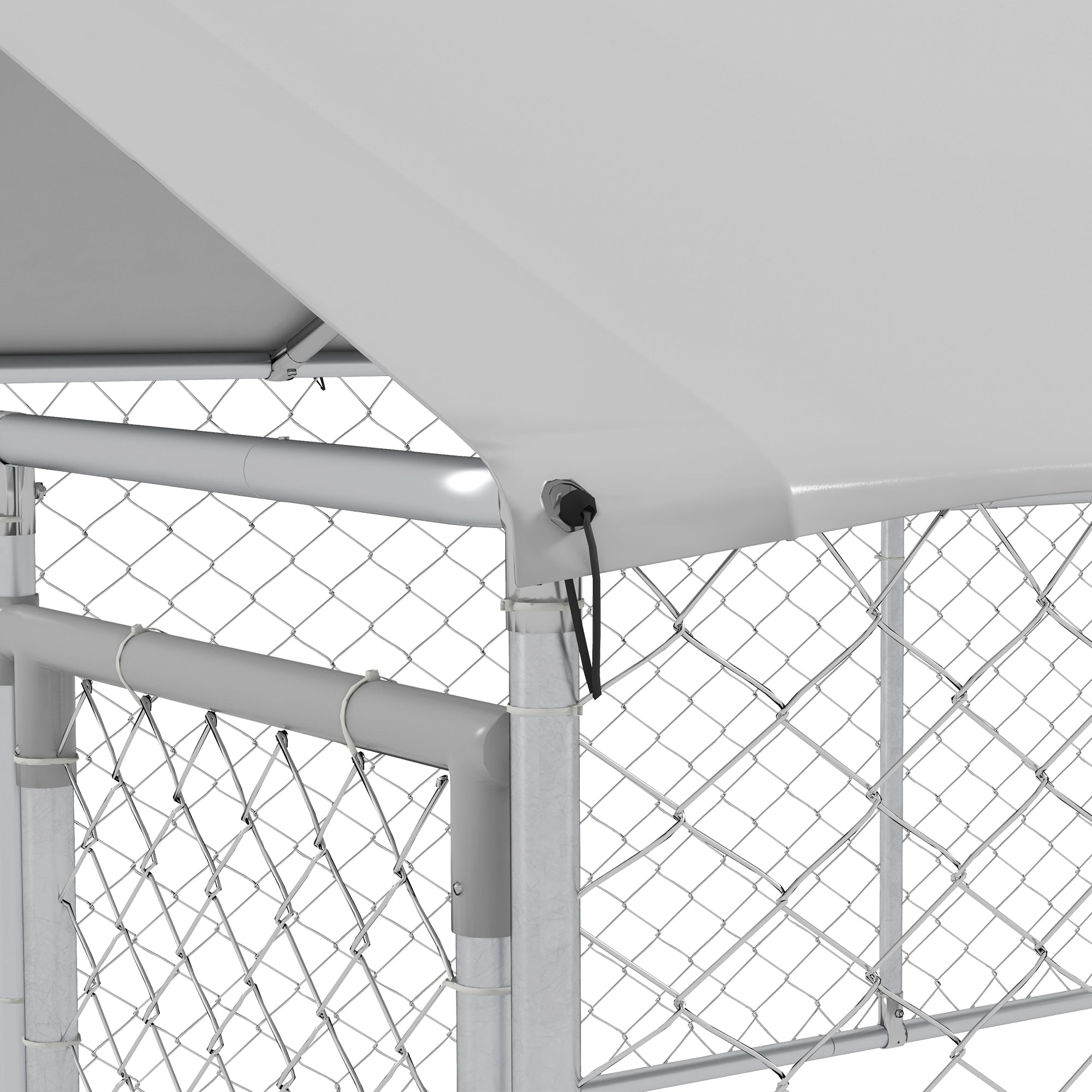 - - Dog Run Dimensions: 13.1' L x 7.5' W x 4.9' H(4 x 2.3 x 1.5 m). Eaves height: 3.5 ft (1.06 m). Assembly required.
