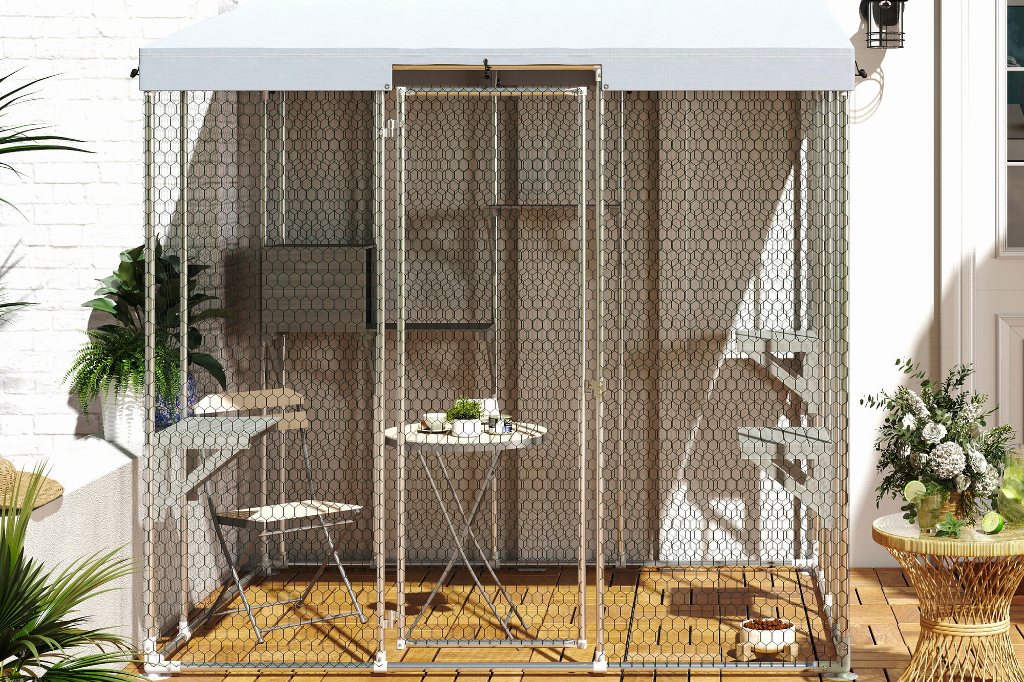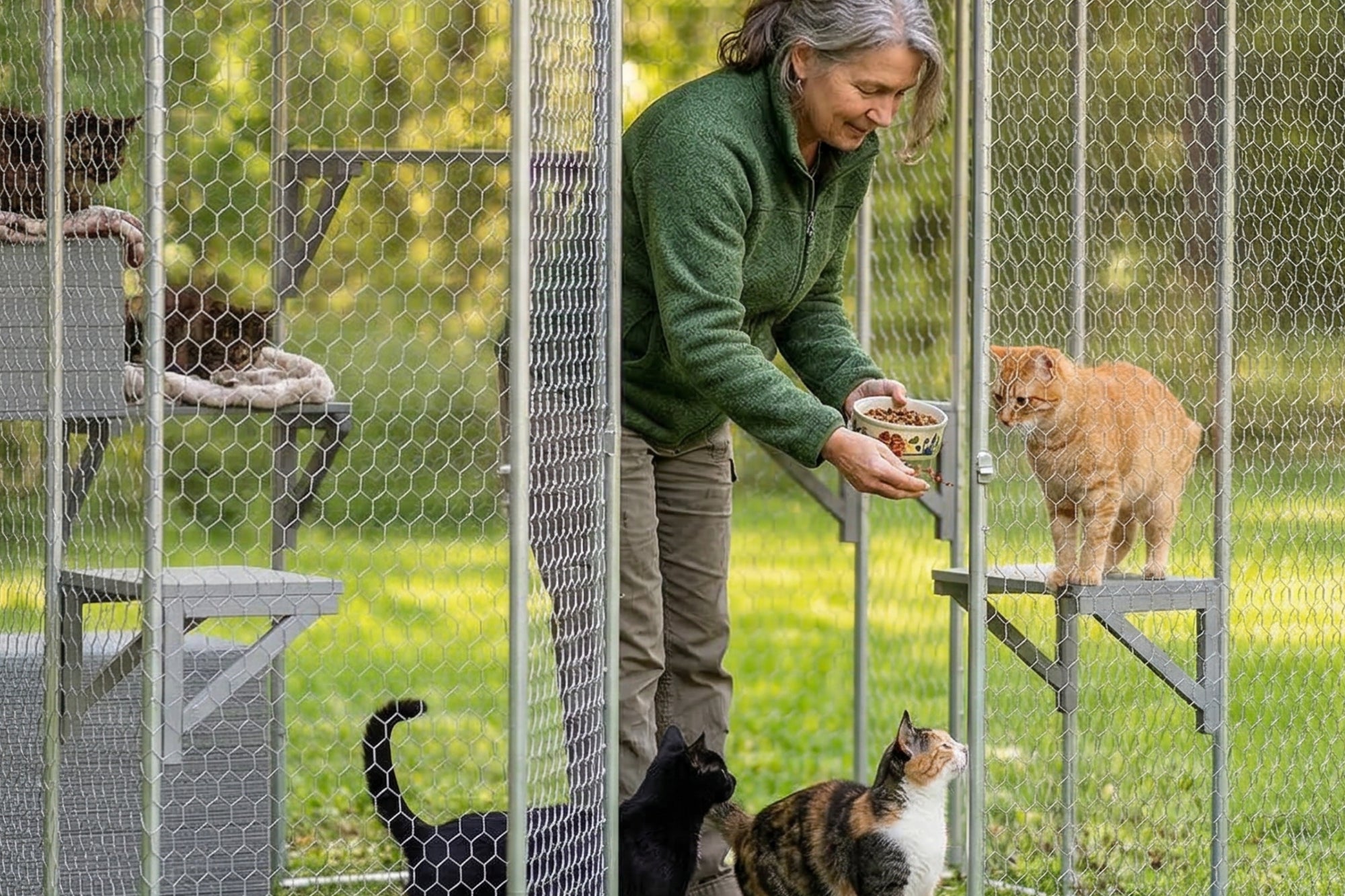The walk-in design makes everyday care easier and turns the catio into a shared space.
